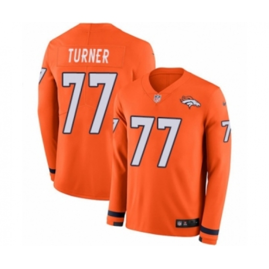 >Men's Nike Denver Broncos #77 Billy Turner Limited Orange Therma Long Sleeve NFL Jersey