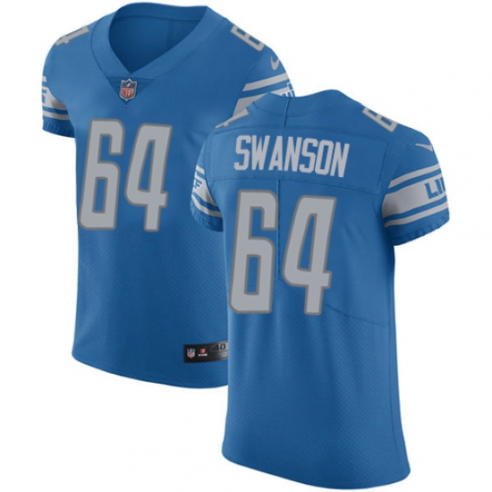 Home>NFL>Detroit Lions>Travis Swanson>Men's Nike Detroit Lions #64 Travis Swanson Light Blue Team Color Vapor Untouchable Elite Player NFL Jersey