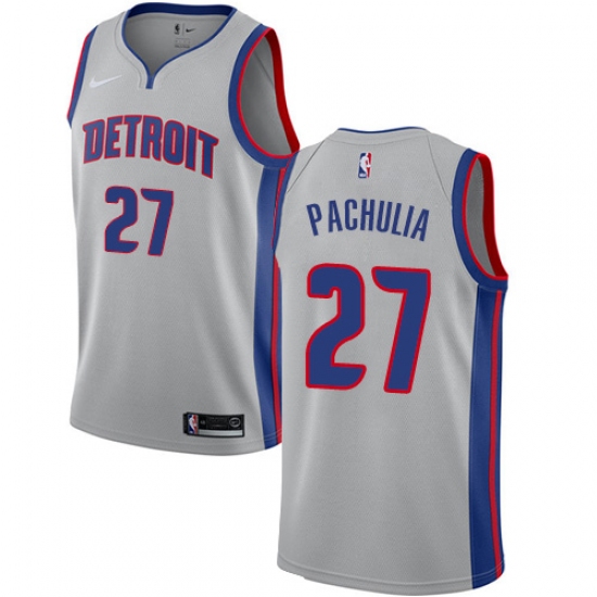 Men's Nike Detroit Pistons #27 Zaza Pachulia Swingman Silver NBA Jersey Statement Edition