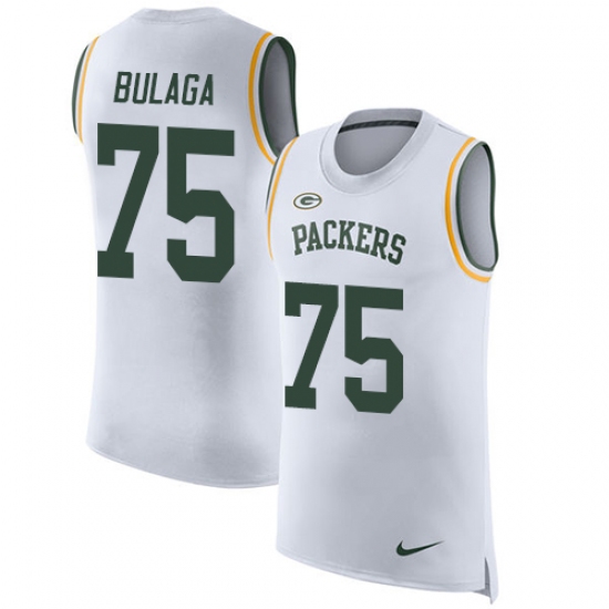 Home>NFL>Green Bay Packers>Bryan Bulaga>Men's Nike Green Bay Packers #75 Bryan Bulaga Limited White Rush Player Name & Number Tank Top NFL Jersey