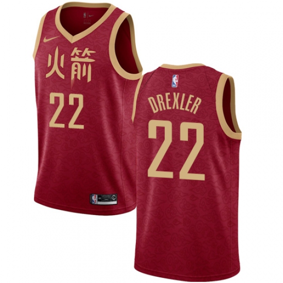 Men's Nike Houston Rockets #22 Clyde Drexler Swingman Red NBA Jersey - 2018 19 City Edition