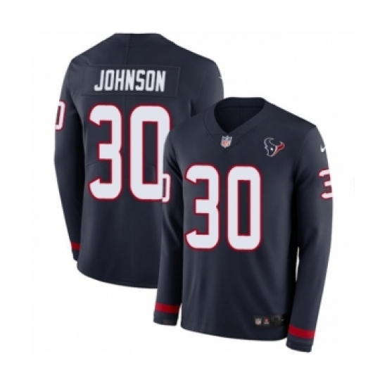 >Men's Nike Houston Texans #30 Kevin Johnson Limited Navy Blue Therma Long Sleeve NFL Jersey
