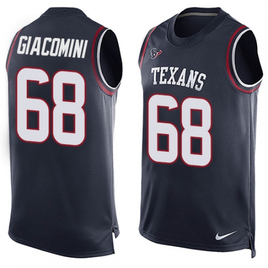 Men's Nike Houston Texans #68 Breno Giacomini Limited Navy Blue Player Name & Number Tank Top NFL Jersey
