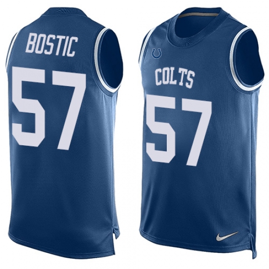 Home>NFL>Indianapolis Colts>Jon Bostic>Men's Nike Indianapolis Colts #57 Jon Bostic Limited Royal Blue Player Name & Number Tank Top NFL Jersey