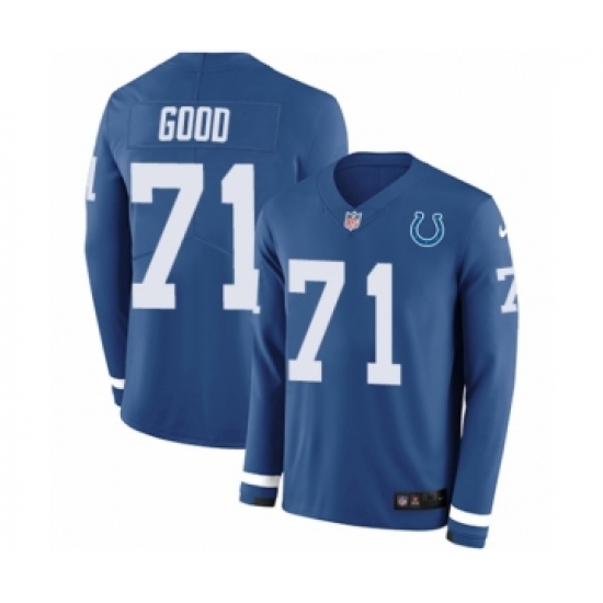 >Men's Nike Indianapolis Colts #71 Denzelle Good Limited Blue Therma Long Sleeve NFL Jersey