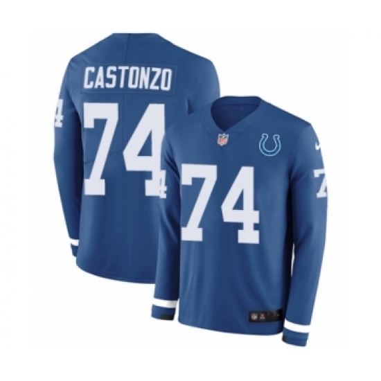 Men's Nike Indianapolis Colts #74 Anthony Castonzo Limited Blue Therma Long Sleeve NFL Jersey