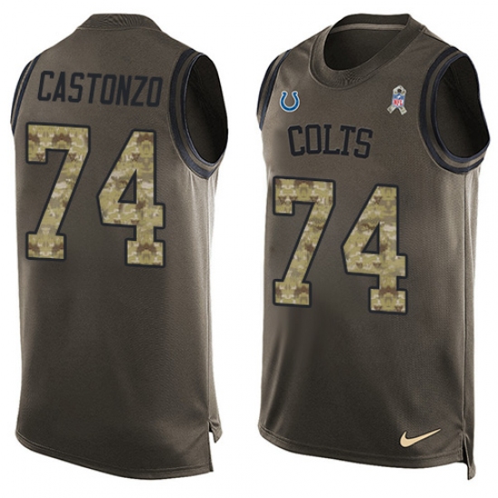 Men's Nike Indianapolis Colts #74 Anthony Castonzo Limited Green Salute to Service Tank Top NFL Jersey