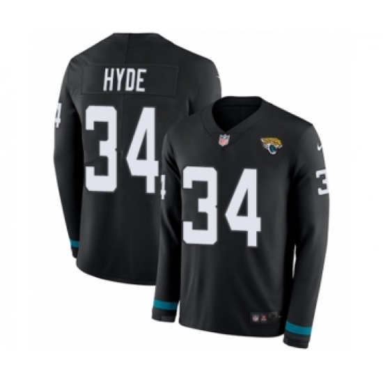 >Men's Nike Jacksonville Jaguars #34 Carlos Hyde Limited Black Therma Long Sleeve NFL Jersey