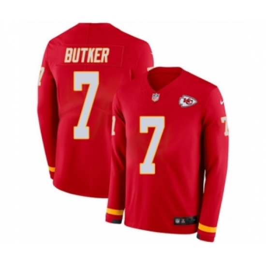 >Men's Nike Kansas City Chiefs #7 Harrison Butker Limited Red Therma Long Sleeve NFL Jersey