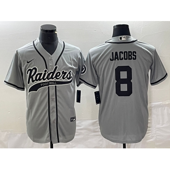 Men's Nike Las Vegas Raiders #8 Josh Jacobs Gray Cool Base Stitched Baseball Jersey