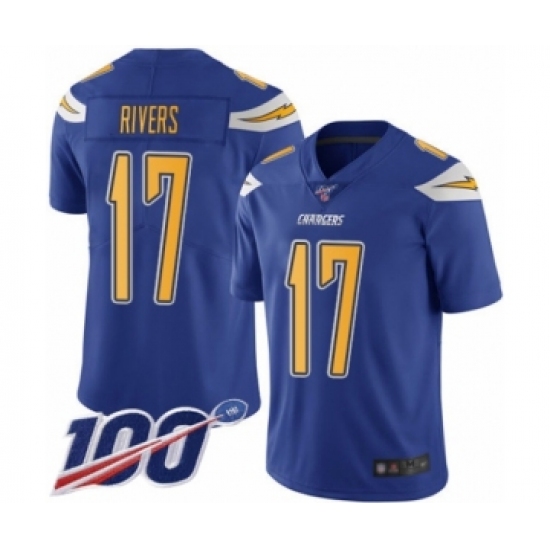 Men's Nike Los Angeles Chargers #17 Philip Rivers Limited Electric Blue Rush Vapor Untouchable 100th Season NFL Jersey