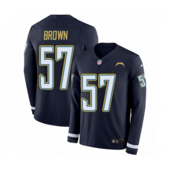 >Men's Nike Los Angeles Chargers #57 Jatavis Brown Limited Navy Blue Therma Long Sleeve NFL Jersey