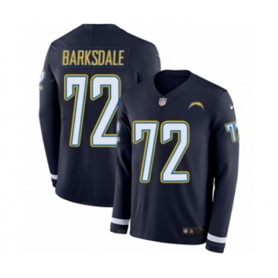 >Men's Nike Los Angeles Chargers #72 Joe Barksdale Limited Navy Blue Therma Long Sleeve NFL Jersey