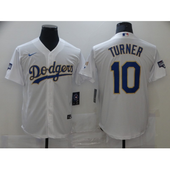 Men's Nike Los Angeles Dodgers #10 Justin Turner White Game Champions Jersey