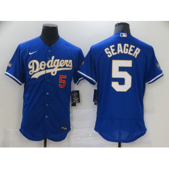Men's Nike Los Angeles Dodgers #5 Corey Seager Blue Elite Series Champions Jersey