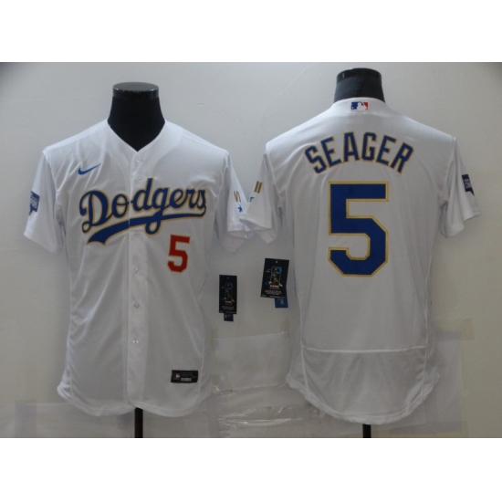 Men's Nike Los Angeles Dodgers #5 Corey Seager White World Series Champions Authentic Jersey