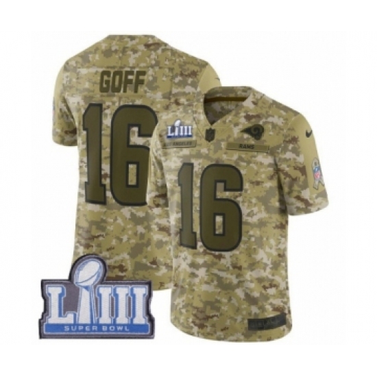 Men's Nike Los Angeles Rams #16 Jared Goff Limited Camo 2018 Salute to Service Super Bowl LIII Bound NFL Jersey