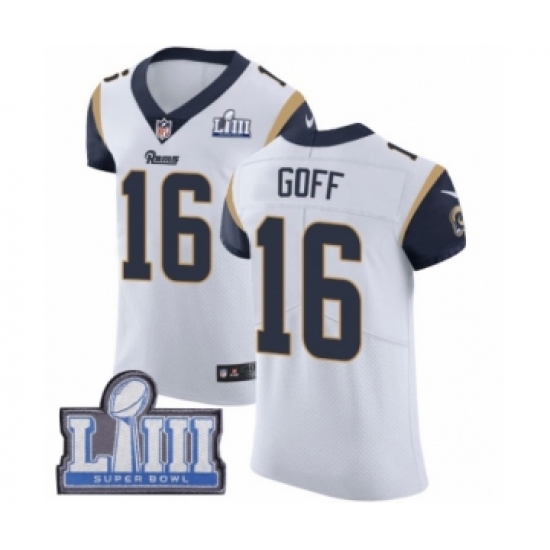 >Men's Nike Los Angeles Rams #16 Jared Goff White Vapor Untouchable Elite Player Super Bowl LIII Bound NFL Jersey