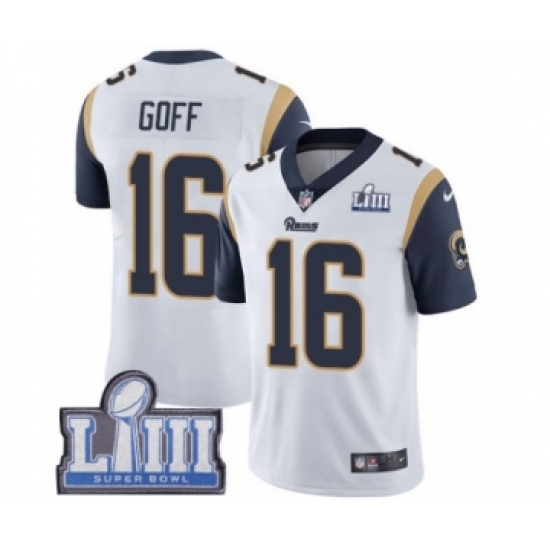 >Men's Nike Los Angeles Rams #16 Jared Goff White Vapor Untouchable Limited Player Super Bowl LIII Bound NFL Jersey