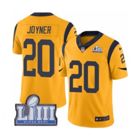 >Men's Nike Los Angeles Rams #20 Lamarcus Joyner Limited Gold Rush Vapor Untouchable Super Bowl LIII Bound NFL Jersey