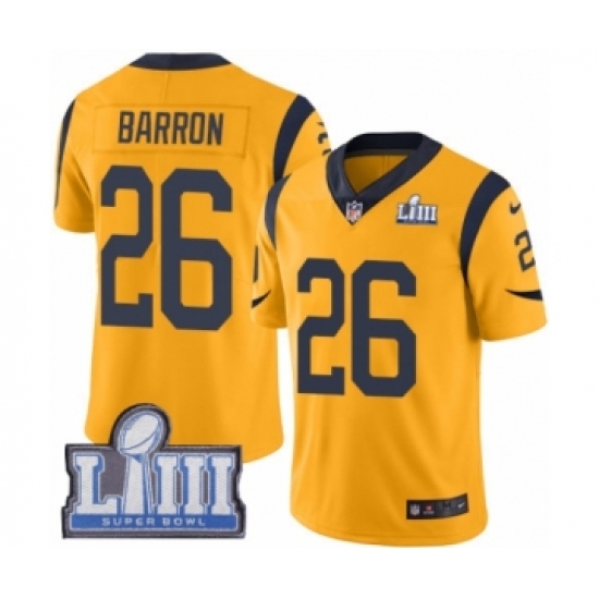 >Men's Nike Los Angeles Rams #26 Mark Barron Limited Gold Rush Vapor Untouchable Super Bowl LIII Bound NFL Jersey