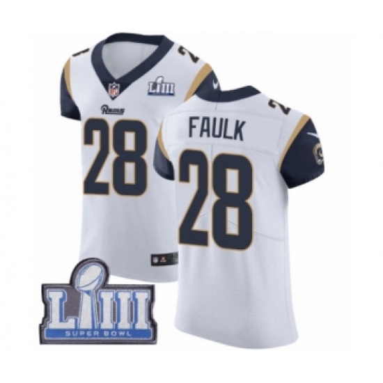 Men's Nike Los Angeles Rams #28 Marshall Faulk White Vapor Untouchable Elite Player Super Bowl LIII Bound NFL Jersey