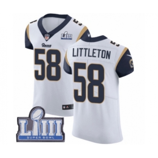 Men's Nike Los Angeles Rams #58 Cory Littleton White Vapor Untouchable Elite Player Super Bowl LIII Bound NFL Jersey