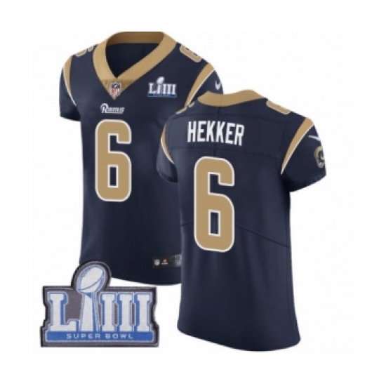 >Men's Nike Los Angeles Rams #6 Johnny Hekker Navy Blue Team Color Vapor Untouchable Elite Player Super Bowl LIII Bound NFL Je
