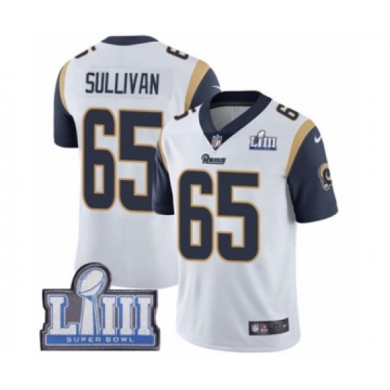 Men's Nike Los Angeles Rams #65 John Sullivan White Vapor Untouchable Limited Player Super Bowl LIII Bound NFL Jersey