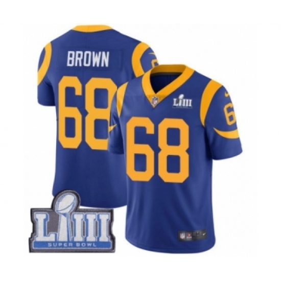 Men's Nike Los Angeles Rams #68 Jamon Brown Royal Blue Alternate Vapor Untouchable Limited Player Super Bowl LIII Bound NFL Jersey