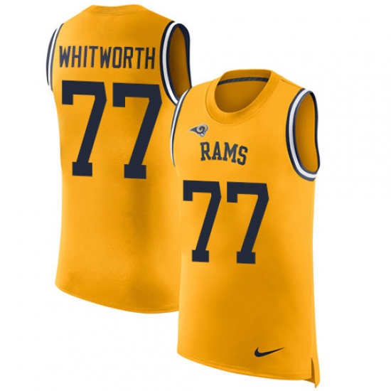 Home>NFL>Los Angeles Rams>Andrew Whitworth>Men's Nike Los Angeles Rams #77 Andrew Whitworth Limited Gold Rush Player Name & Number Tank Top NFL Jersey