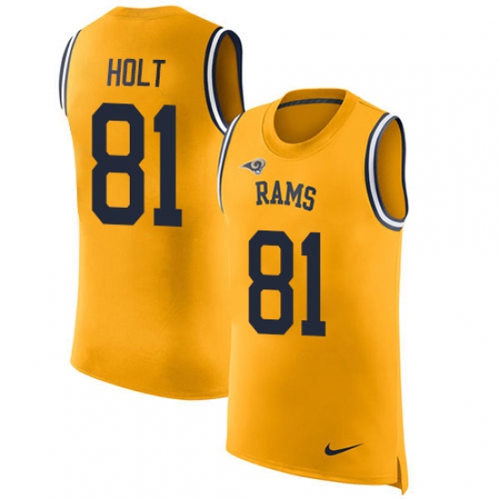 Home>NFL>Los Angeles Rams>Torry Holt>Men's Nike Los Angeles Rams #81 Torry Holt Limited Gold Rush Player Name & Number Tank Top NFL Jersey