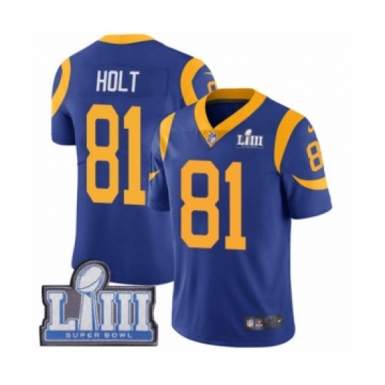 Men's Nike Los Angeles Rams #81 Torry Holt Royal Blue Alternate Vapor Untouchable Limited Player Super Bowl LIII Bound NFL Jersey
