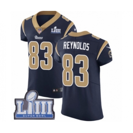 >Men's Nike Los Angeles Rams #83 Josh Reynolds Navy Blue Team Color Vapor Untouchable Elite Player Super Bowl LIII Bound NFL Jersey
