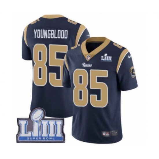 >Men's Nike Los Angeles Rams #85 Jack Youngblood Navy Blue Team Color Vapor Untouchable Limited Player Super Bowl LIII Bound NFL Jersey
