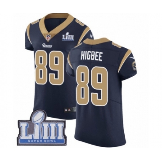 Men's Nike Los Angeles Rams #89 Tyler Higbee Navy Blue Team Color Vapor Untouchable Elite Player Super Bowl LIII Bound NFL Jersey