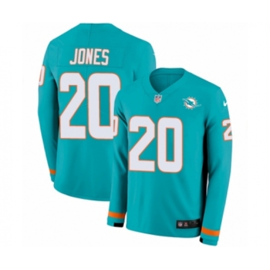Men's Nike Miami Dolphins #20 Reshad Jones Limited Aqua Therma Long Sleeve NFL Jersey
