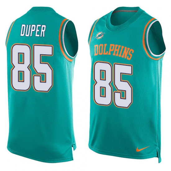 Home>NFL>Miami Dolphins>Mark Duper>Men's Nike Miami Dolphins #85 Mark Duper Limited Aqua Green Player Name & Number Tank Top NFL Jersey