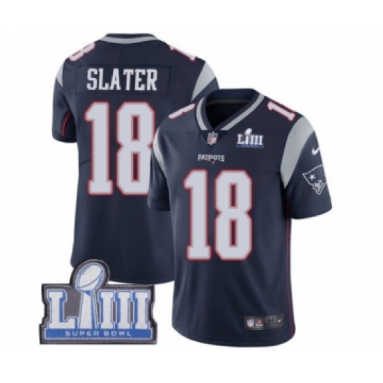 >Men's Nike New England Patriots #18 Matthew Slater Navy Blue Team Color Vapor Untouchable Limited Player Super Bowl LIII Bound NFL Jersey