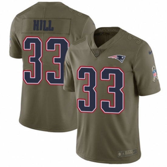 >Men's Nike New England Patriots #33 Jeremy Hill Limited Olive 2017 Salute to Service NFL Jersey