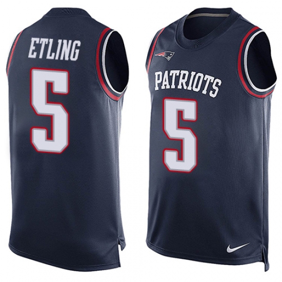 Men's Nike New England Patriots #5 Danny Etling Limited Navy Blue Player Name & Number Tank Top NFL Jerse