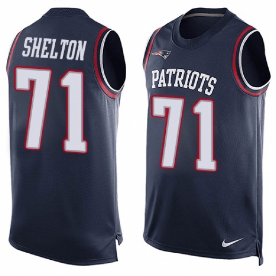 Men's Nike New England Patriots #71 Danny Shelton Limited Navy Blue Player Name & Number Tank Top NFL Jersey