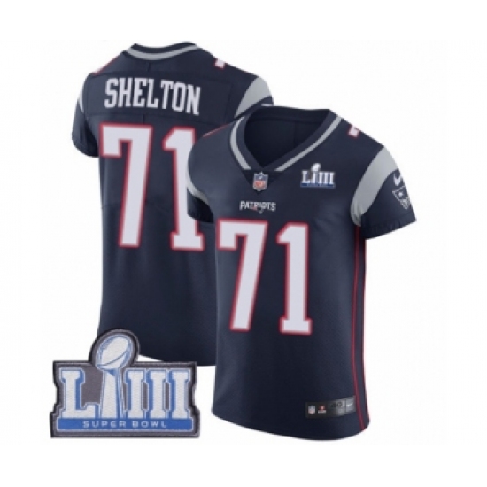 Men's Nike New England Patriots #71 Danny Shelton Navy Blue Team Color Vapor Untouchable Elite Player Super Bowl LIII Bound NFL Jersey