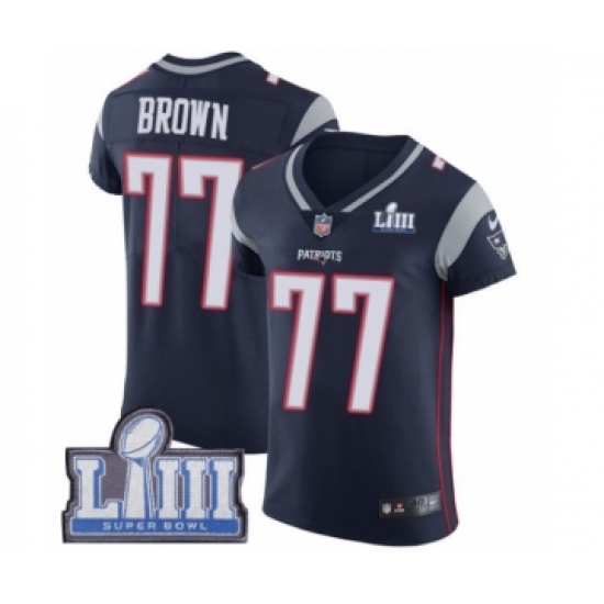 Men's Nike New England Patriots #77 Trent Brown Navy Blue Team Color Vapor Untouchable Elite Player Super Bowl LIII Bound NFL Jersey
