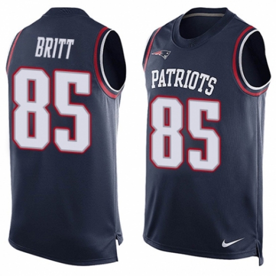 Men's Nike New England Patriots #85 Kenny Britt Limited Navy Blue Player Name & Number Tank Top NFL Jersey