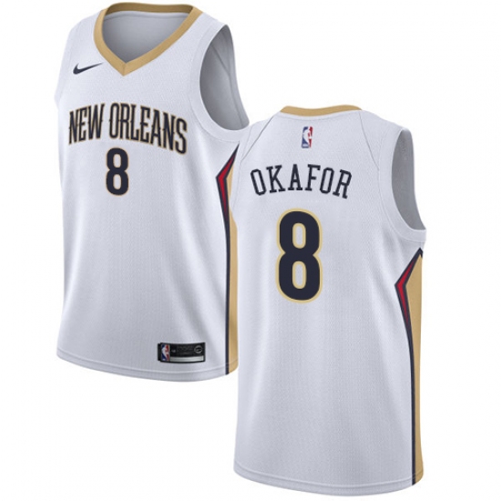 >Men's Nike New Orleans Pelicans #8 Jahlil Okafor Swingman White NBA Jersey - Association Edition