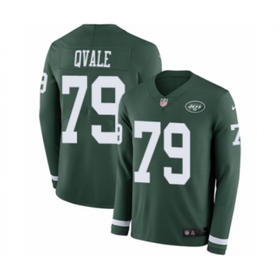Men's Nike New York Jets #79 Brent Qvale Limited Green Therma Long Sleeve NFL Jersey