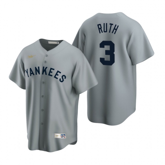 Men's Nike New York Yankees #3 Babe Ruth Gray Cooperstown Collection Road Stitched Baseball Jersey