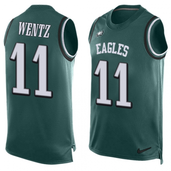 Home>NFL>Philadelphia Eagles>Carson Wentz>Men's Nike Philadelphia Eagles #11 Carson Wentz Limited Midnight Green Player Name & Number Tank Top NFL Jersey