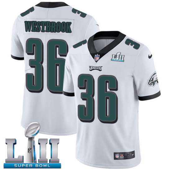 >Men's Nike Philadelphia Eagles #36 Brian Westbrook White Vapor Untouchable Limited Player Super Bowl LII NFL Jersey